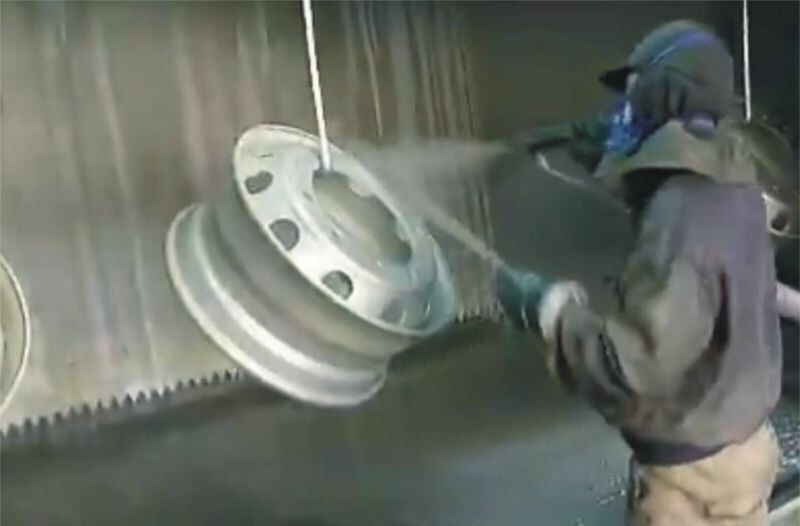 to limit or cut off the path of paint; to control paint flow; to spray paint to
